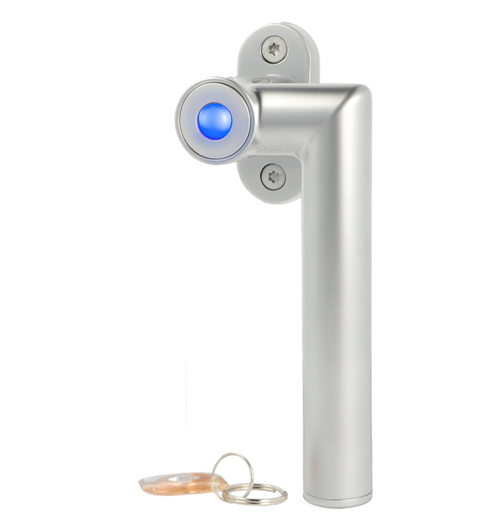 Electronic Lock "E-Win" RFID & Bluetooth, Right, Alu Look, F/Patio Doors and Windows, cc:34mm, F/IOS & Android. Included: 1 Masterkey 14.60.306-8 + 1 Userkey 14.60.306-7 , 1 Adapter F/8mm Spindle - 2 Pcs. Batteries AA/SL760-3.6V Are Not Included (14.04.602-7)