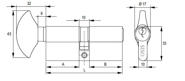Profile Cylinder, Brass Satin, 60mm, W/Knob #2,Yale Key Way, W/3 SISO Metal Keys, With Screw