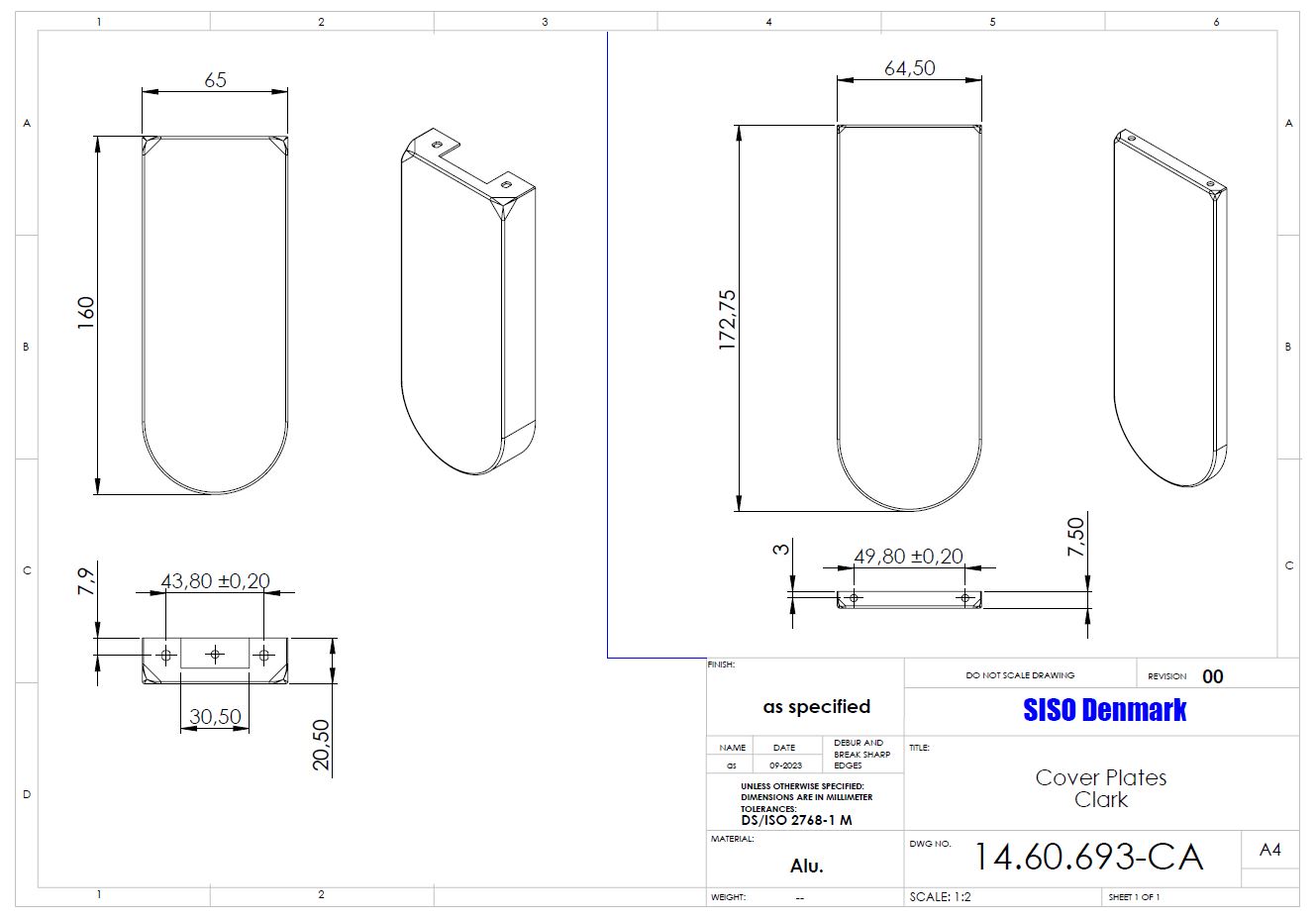 Cover Plates Brushed SS-304, F/"Clark" Large Striker (44-50)