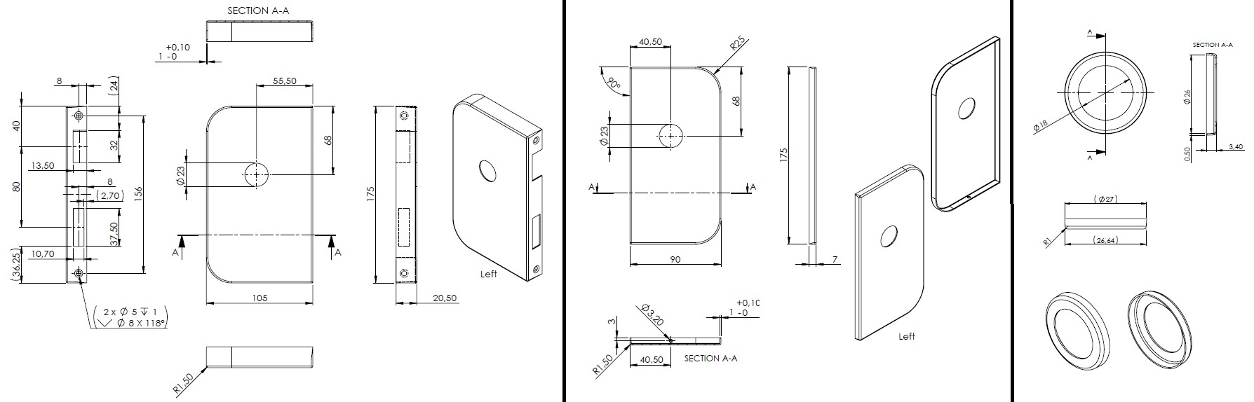Cover Plates "Robin",W/Handle Hole, Left, SS-304 Brushed