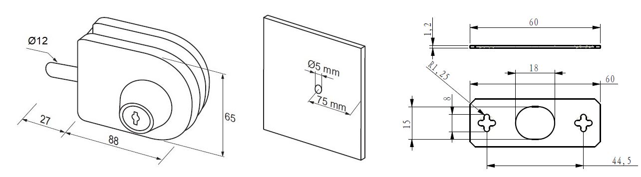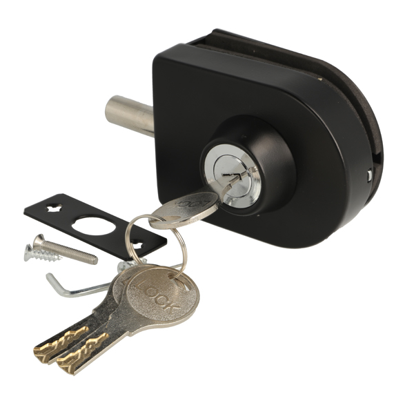 Glass Door Lock "Frigg" F/10-12mm, no Cutting, Black Finish, SS201, W/Striker