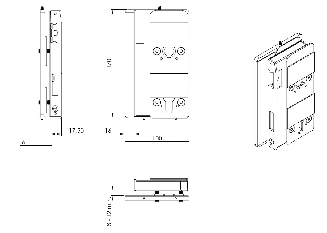 Zamak Striker Body, F/"Robin", Left, For 8-12mm Glass, Use Left Zamak Body 14.60.652-0 + Covers
