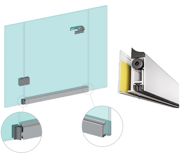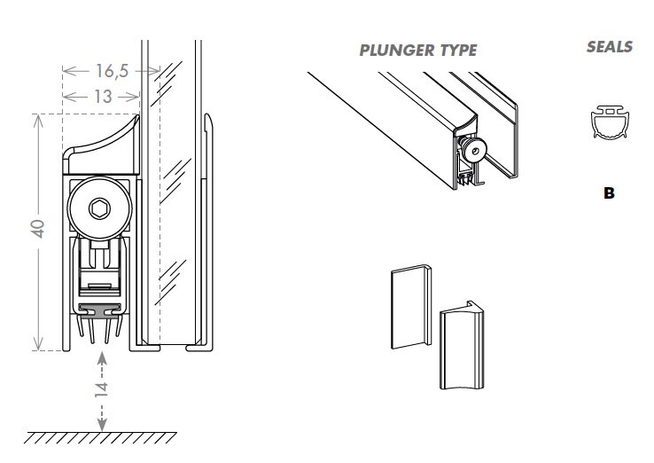 Drop Down Black Alu Profile, "B" ,F/Glass Doors,930mm, W/Ad- hesive Tape, 40mm Profile Height, 14mm Drop Function,Can be shorten 150mm on the opposite Side to the Plunger, Tested to