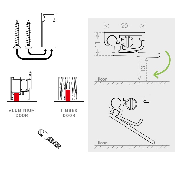 Flap Seal F/Hinged Aluminum Doors, 925mm, Turned Plunger