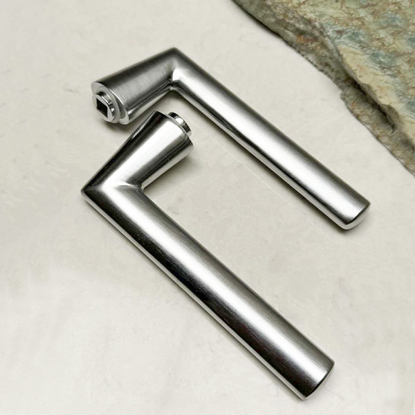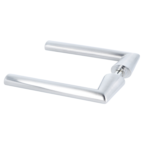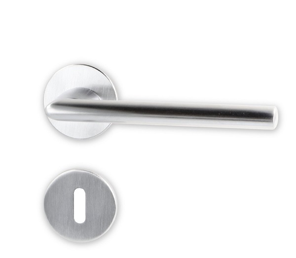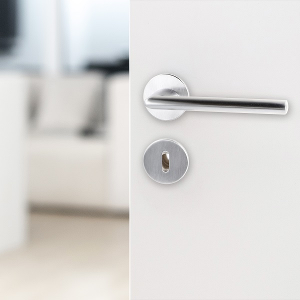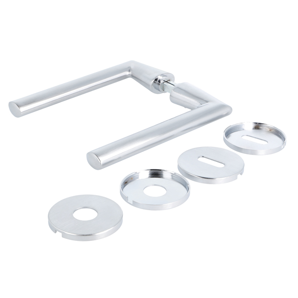 Zamak Door Handle "Jazz", SS-Look, 8x8x95mm Split Spindle, Incl. Round Spring Rosettes,Oval Key Hole Escutcheons, Hex Key, Wooden Screws, M4 Connecting Screws & Washers. cc: 38mm. Door Thickness: 38-50mm.