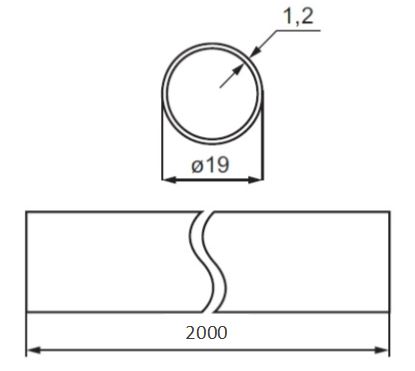 SS-304 Tube ø19x2000mm, 1,2mm Thickness, Brushed
