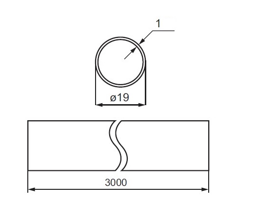 SS-304 Tube ø19x3000mm, 1,0mm Thickness, Black Finish