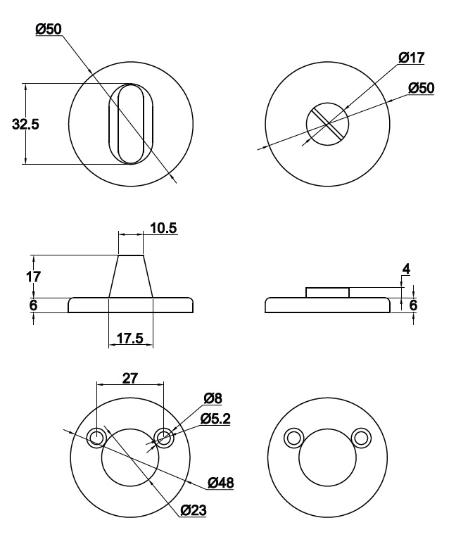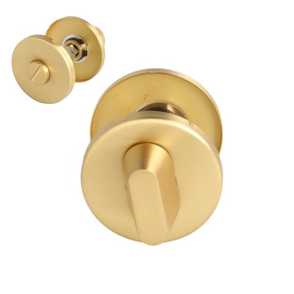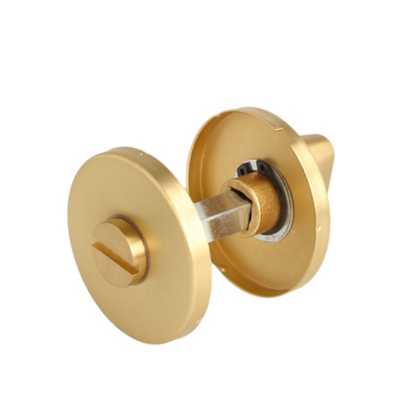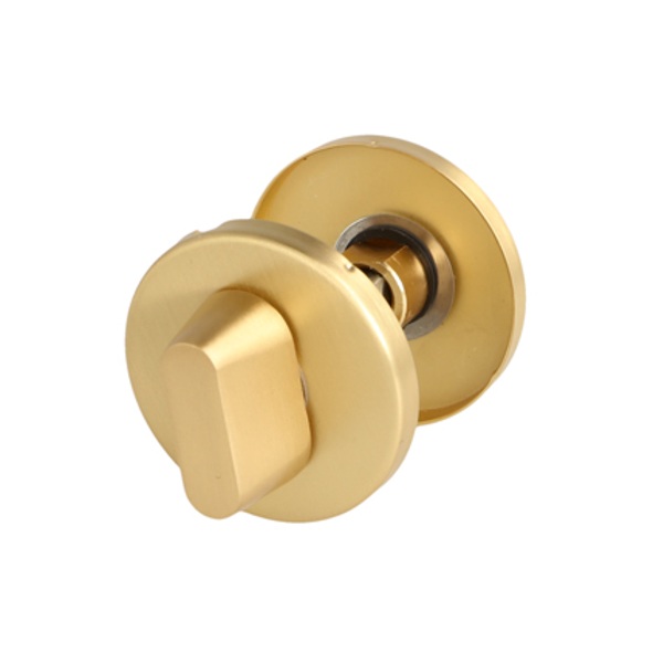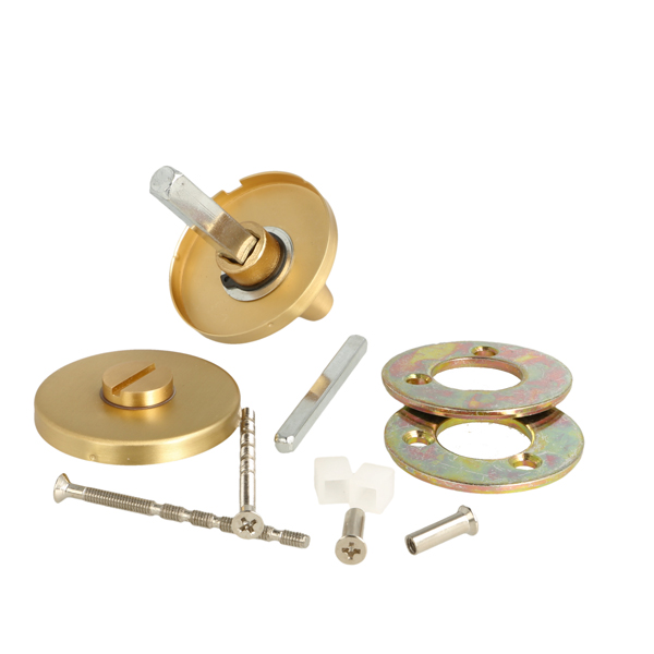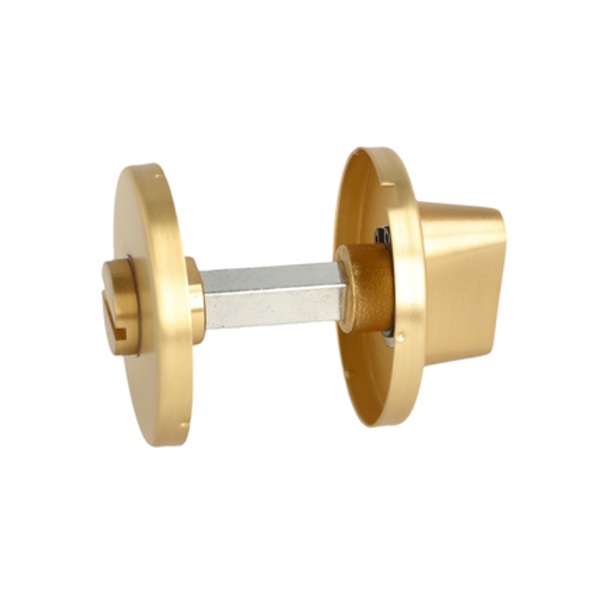 Thumbturn & Release "Pop" Brushed Brass, SS-304, W/O Indicator F/38-45mm Doors, CC:27mm Mounting Plate, 2 Pcs. Cut Off Screws M4x60mm + 2 Pcs. Sleeve Nuts M4x16mm, 1 Pcs 5x5x60mm Spindle, 1 Pcs 8x8x60mm Spindle