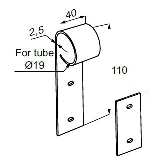 Tube Clip Holder, 110x40x2,5mm,SS304, F/ø19mm Tube, F/Toilet Cubicles, F/10-18mm Panels