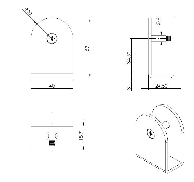 U-Bracket SS-304, Black Finish F/18mm Panel, F/Toilet Cubi- icles,Incl. Black EPDM Washers For 10,13 & 16mm Panel Thick- ness. 2 x 2mm,1 x 3mm & 2 x 4mm
