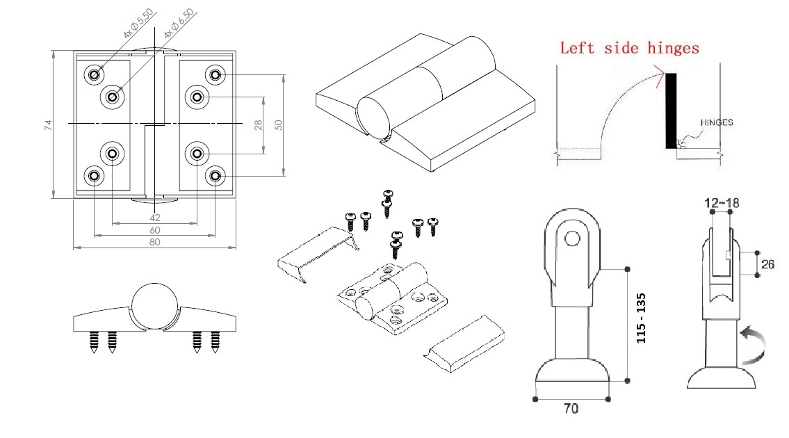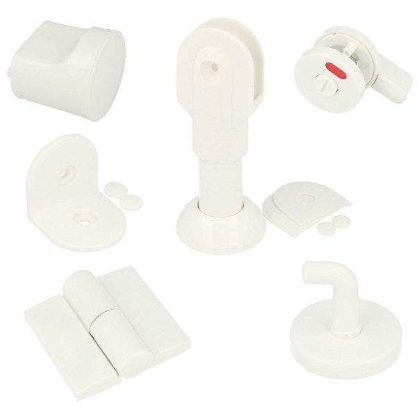 Toilet Cubicle Fit, White, PP, Left, Leg 115-135mm, Consist off 2 Handles, 1 Hook , 1 Lock, 12 Angle Brackets, 2 Hinges & 2 Stands, F/12-18mm Panels, F/Left Hand Doors