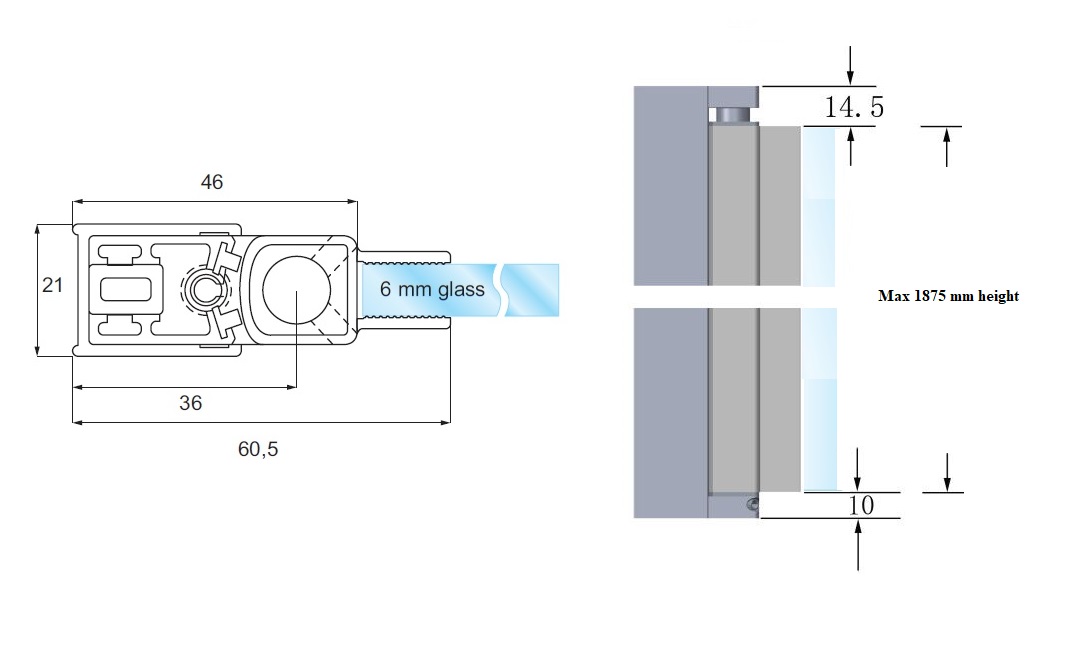 Lift Hinge "Square" Wall/Glass, CPL Finish, 1,9 Meters, All Access. Max Glass Size: 2100x800mm, Glass Thickness: 6mm, Load Capacity: 23kg