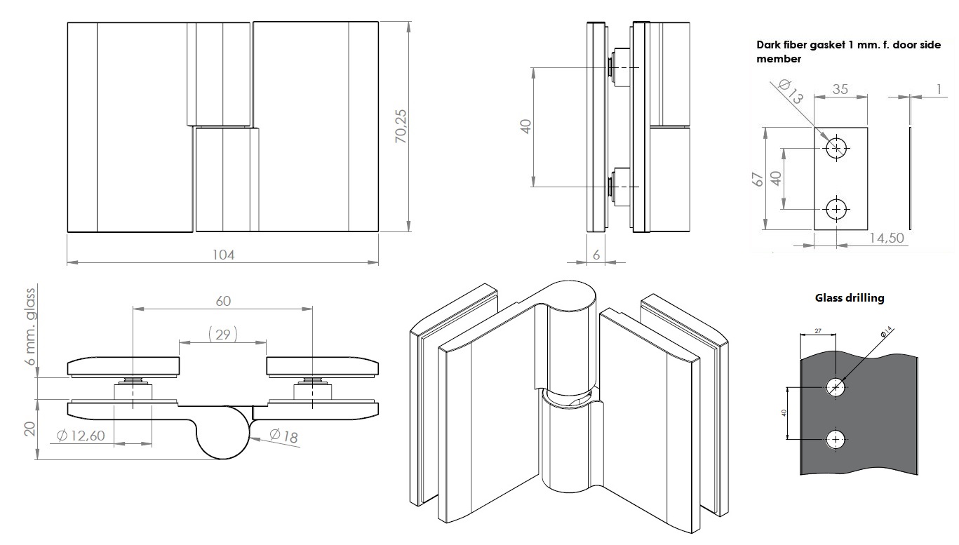 Shower Hinge "Jaro" Up/Down, Black Finish, 180DG, Right, Glass/Glass, 6-8mm Glass Thickness, ø14mm Drilling, All Brass Material