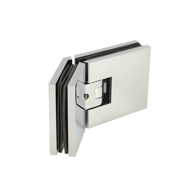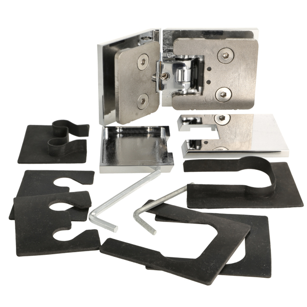 Shower Hinge "Lima", 135DG, CPL, Glass/Glass, 6-10mm Glass Thickness, W/15 DG Angle Adjustment Function & 15DG Return Function, Brass Material, Hidden Screws. Black Rubber Gaskets: 4 x 1mm & 4 x 2mm Thickness. Load Capacity Pr. Pair: 45kg
