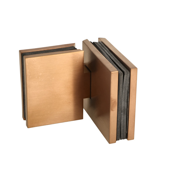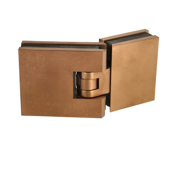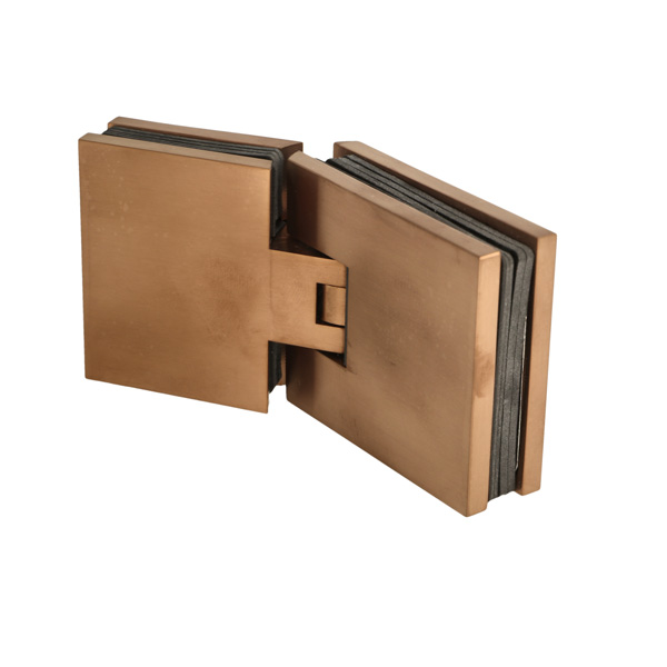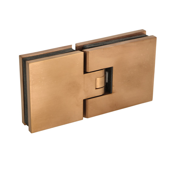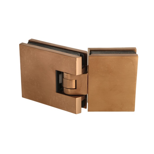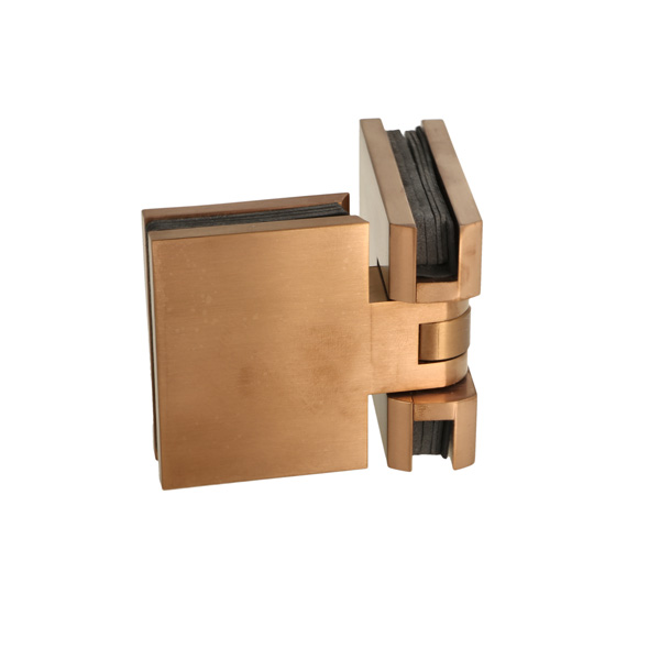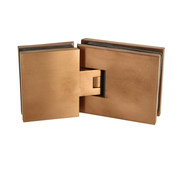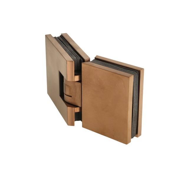 Shower Hinge "Lima", 180DG, Glass/Glass, Brushed Copper, 6- 10mm Glass Thickness, W/15 DG Angle Adjustment Function & 15 DG Return Function, Brass Material, Hidden Screws. Black Rubber Gaskets: 4 x 1mm & 4 x 2mm Thickness. Load Capacity Pr. Pair: 45kg