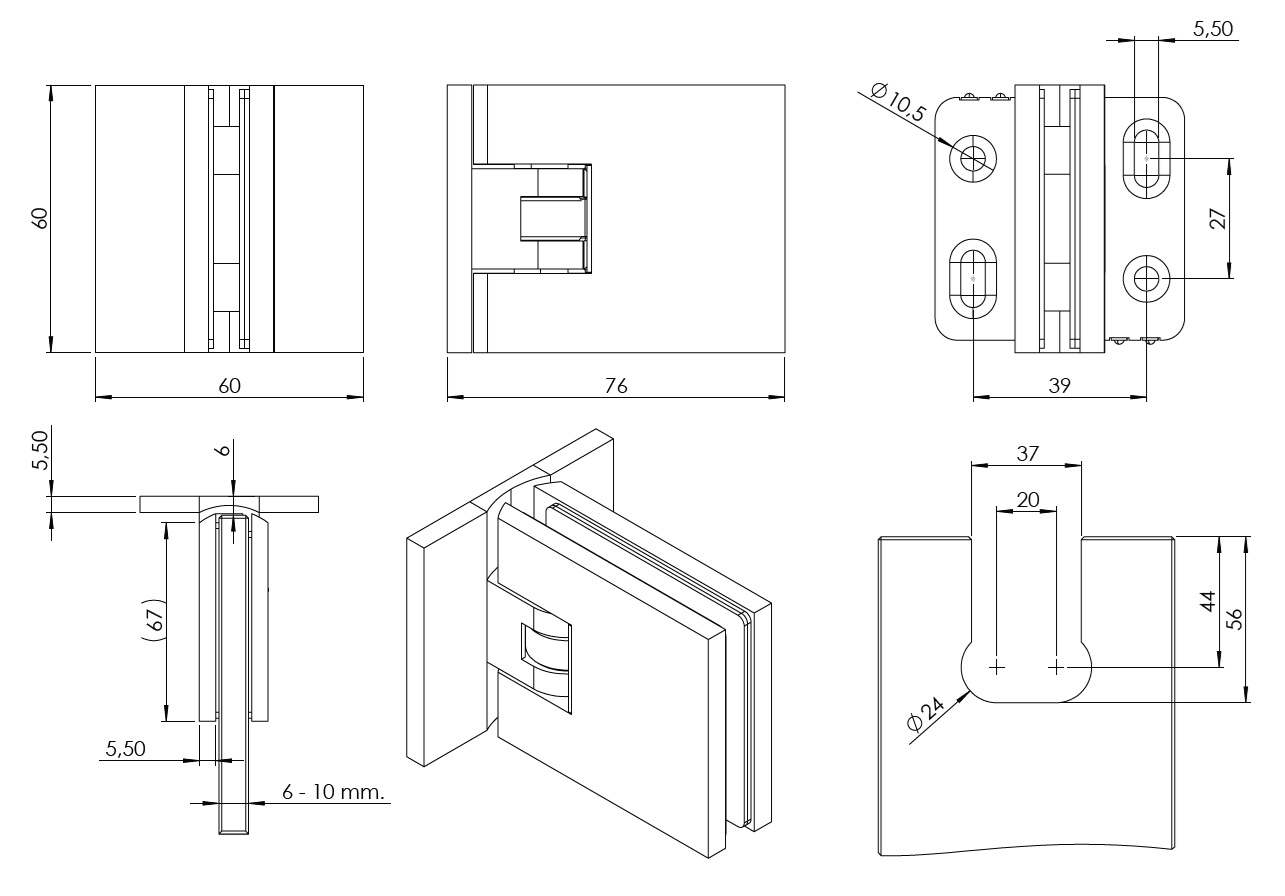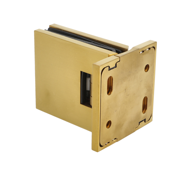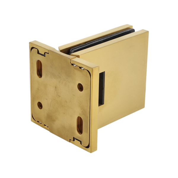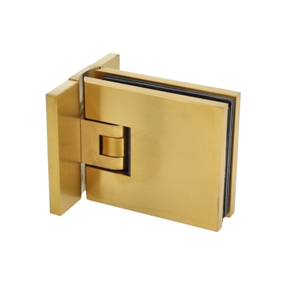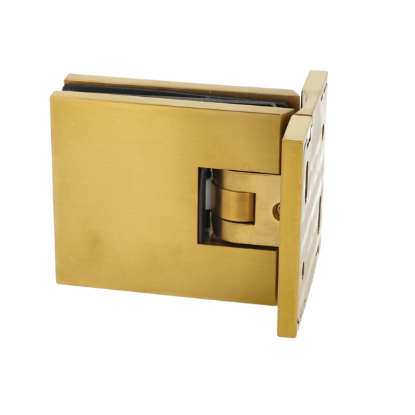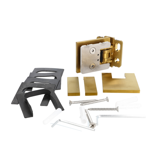 Shower Hinge "Lima", Wall/Glass, Brushed Brass, Centre Back 6-10mm Glass Thickness, W/15 DG Angle Adjustment Function & 15DG Return Function, Brass Material, Hidden Screws. Black Rubber Gaskets: 2 x 1mm & 2 x 2mm Thickness. Load Capacity Pr. Pair: 45kg