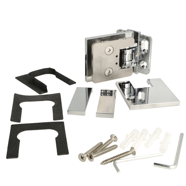 Shower Hinge "Lima", Wall/Glass, CPL, Centre Back Pl, 6-10mm Glass Thickness, W/15 DG Angle Adjustment Function & 15DG Return Function, Brass Material, Hidden Screws. Black Rubber Gaskets: 2 x 1mm & 2 x 2mm Thickness. Load Capacity Pr. Pair: 45kg