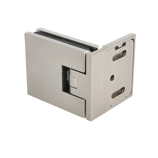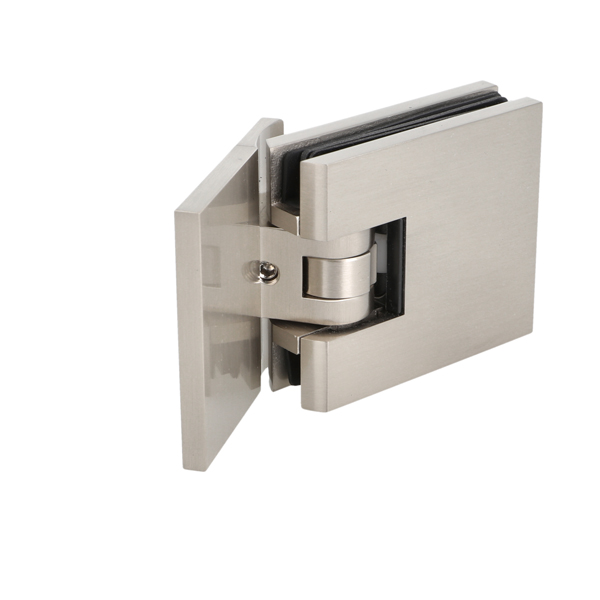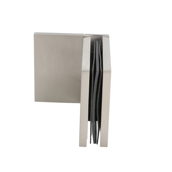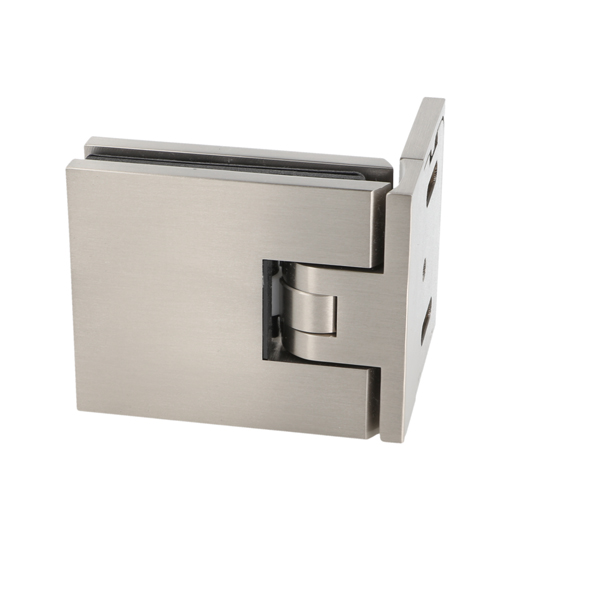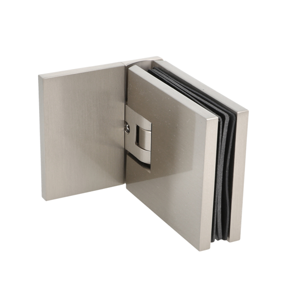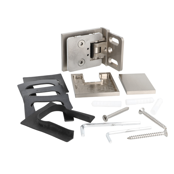 Shower Hinge "Lima", Wall/Glass, SS-Look, Offset Back Pl, 6- 10mm Glass Thickness, W/15 DG Angle Adjustment Function & 15DG Return Function, Brass Material, Hidden Screws. Black Rubber Gaskets: 2 x 1mm & 2 x 2mm Thickness. Load Capacity Pr. Pair: 45kg