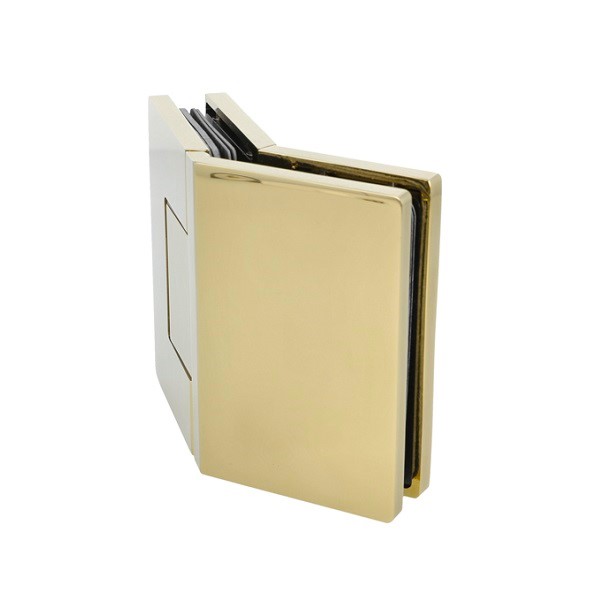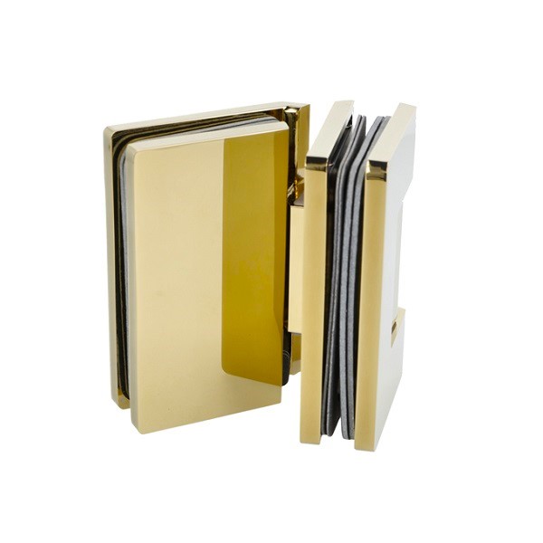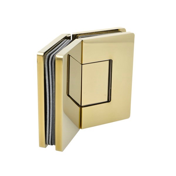 Shower Hinge "Rio", 135DG, Polished Brass, Glass/Glass, 8-10 mm Glass Thickness, W/15 DG Angle Adjustment Function & 15DG Return Function, Brass Material, Hidden Screws. Black Fiber Gaskets: 2 x 1mm & 2 x 2mm Thickness. Load Capacity Pr. Pair: 45kg