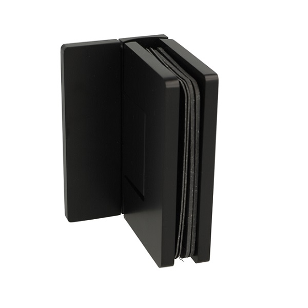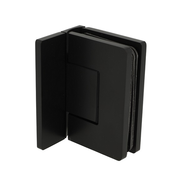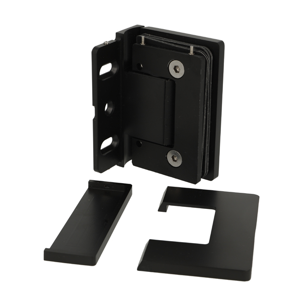 Shower Hinge "Rio", Wall/Glass, Black Finish, Offset Back Pl , 8-10mm Glass Thickness, W/15 DG Angle Adjustment Function & 15DG Return Function, Brass Material, Hidden Screws. Black Fiber Gaskets: 2 x 1mm & 2 x 2mm Thickness. Load Capacity Pr. Pair: 60kg, Max Door Widht: 1200mm.