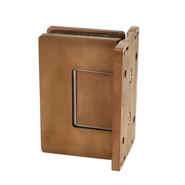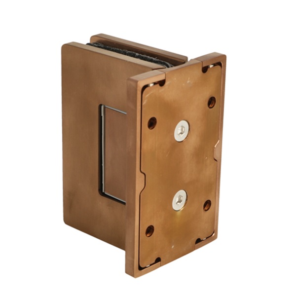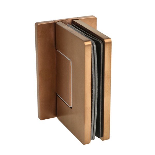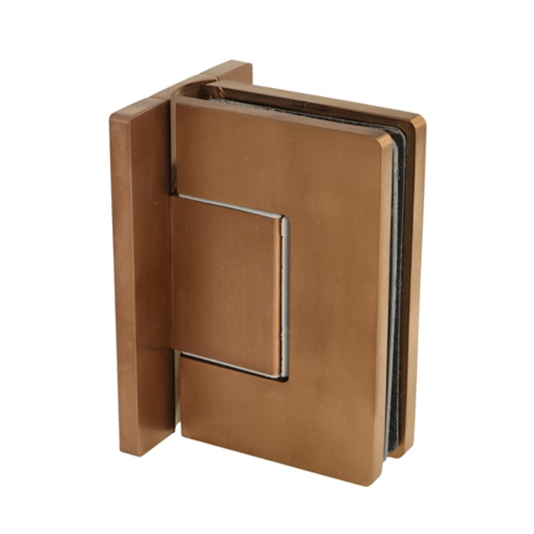 Shower Hinge "Rio", Wall/Glass, Brushed Copper, Centre Back Pl,Glass Thickness, W/15 DG Angle Adjustment Function & 15DG Return Function, Brass Material, Hidden Screws. Black Fiber Gaskets: 2 x 1mm & 2 x 2mm Thickness. Load Capacity Pr. Pair: 45kg