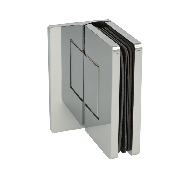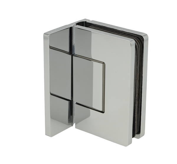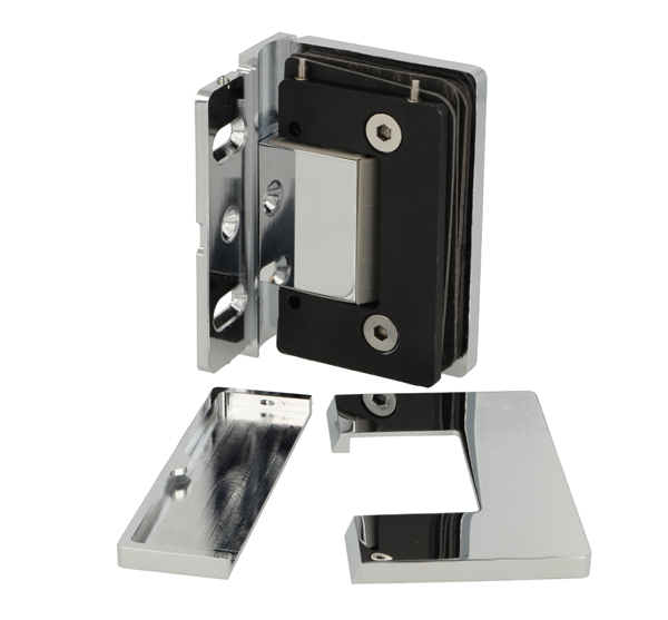 Shower Hinge "Rio", Wall/Glass, CPL, Offset Back Pl, 8-10mm , 8-10mm Glass Thickness, W/15 DG Angle Adjustment Function & 15DG Return Function, Brass Material, Hidden Screws. Black Fiber Gaskets: 2 x 1mm & 2 x 2mm Thickness. Load Capacity Pr. Pair: 60kg, Max Door Widht: 1200mm.