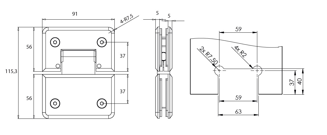 Shower Hinge "CPH III", 180 DG, Glass/Glass,SS-Look, 6-10mm Glass Thickness, W/15DG Angle Adjustment Function & 25DG Return Function, Brass Material, Chamfered Edges