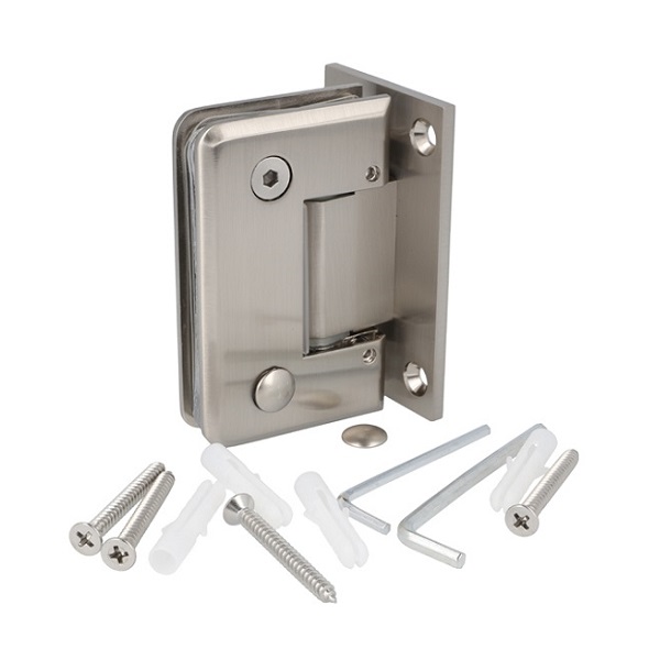 Shower Hinge "CPH III", Wall/Glass, SS-Look, Centre Back Pl, 6-10mm Glass Thickness, W/15DG Angle Adjustment Function & 25DG, Return Function, Brass Material, Chamfered Edges