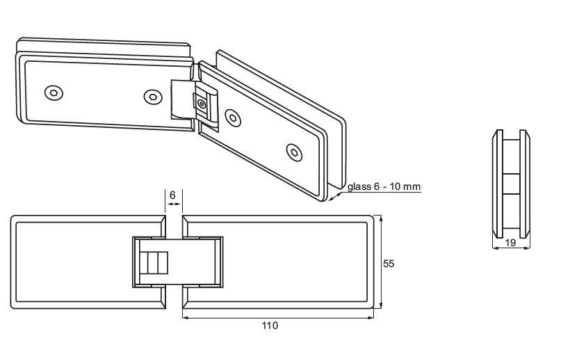 Shower Hinge "Linz", 135DG, Black Finish, Glass/Glass, 6-10 mm Glass Thickness,W/15DG Angle Adjustment Function & 15DG Return Function, Brass Material, Rectangular Shape W/Chamfered Edges