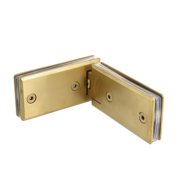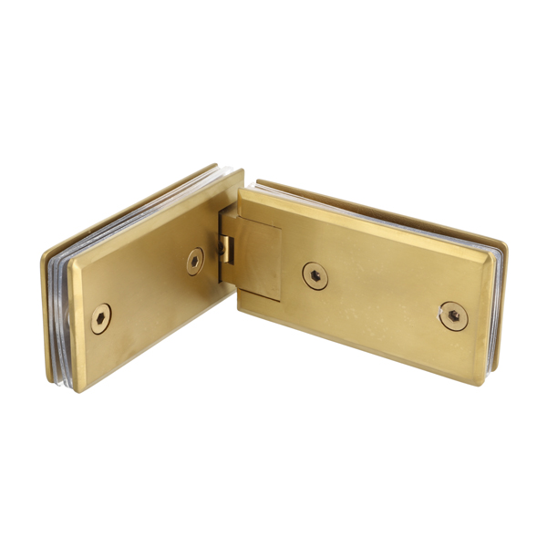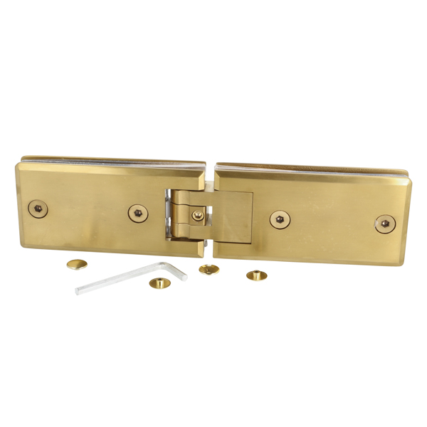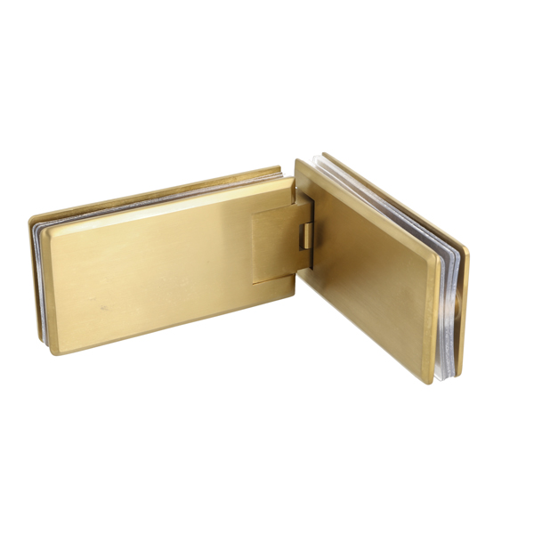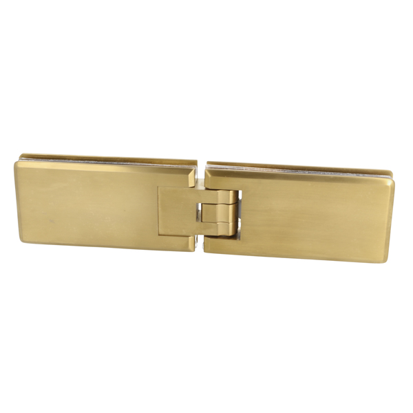 Shower Hinge "Linz", 180DG, Brushed Brass, Glass/Glass, 6- 10mm Glass Thickness,W/15DG Angle Adjustment Function & 15DG Return Function, Brass Material, Rectangular Shape W/ Chamfered Edges