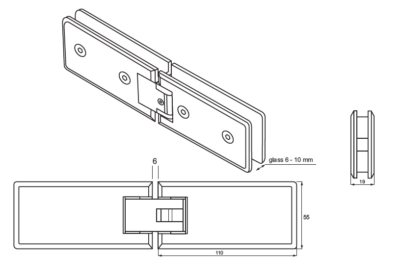 Shower Hinge "Linz", 180DG, CPL, Glass/Glass, 6-10mm Glass Thickness,W/15DG Angle Adjustment Function & 15DG Return Function, Brass Material, Rectangular Shape W/Chamfered Edges