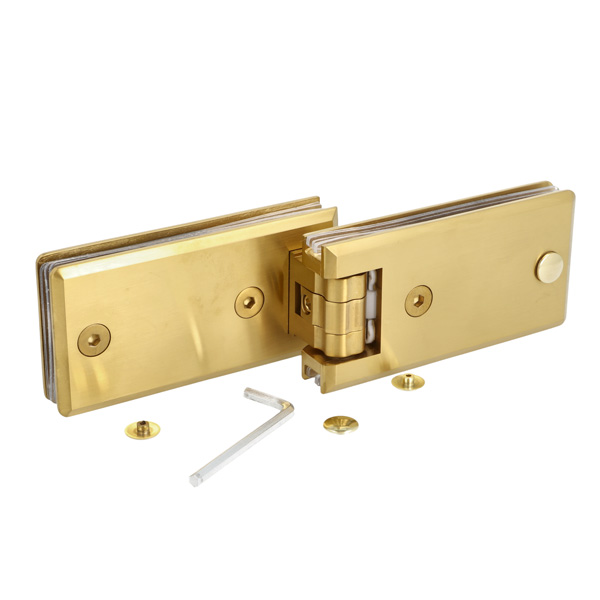 Shower Hinge "Linz", 90DG, Brushed Brass, Glass/Glass, 6-10 mm Glass Thickness,W/15DG Angle Adjustment Function & 15DG Return Function, Brass Material, Rectangular Shape W/Chamfered Edges