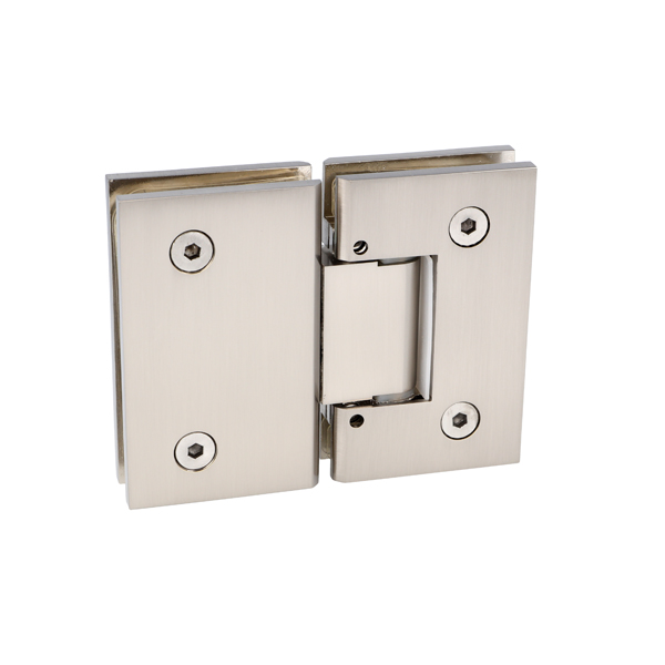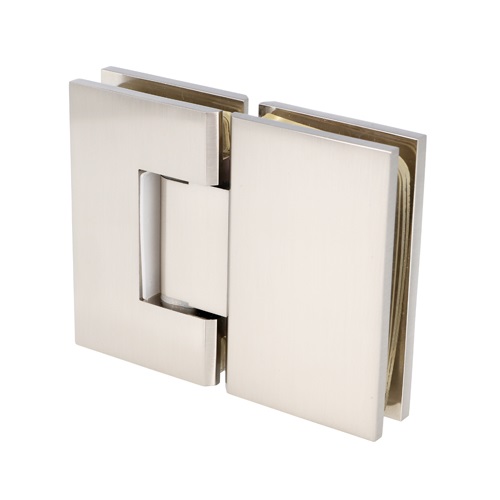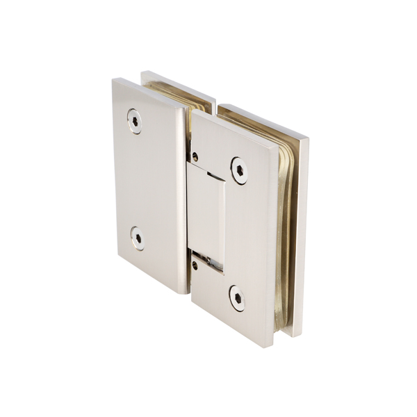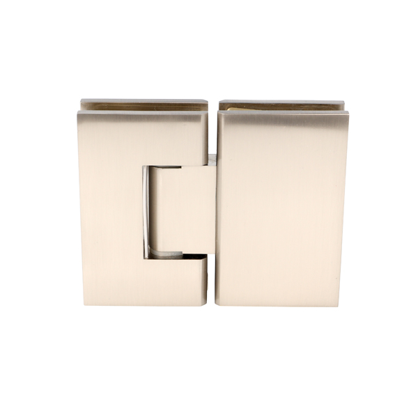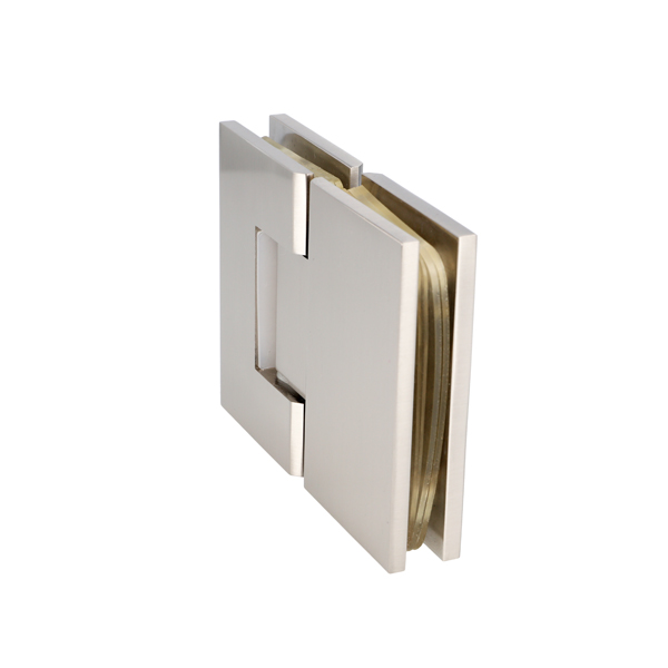 Shower Hinge "Tex III", 180DG, Alu Look, Glass/Glass,6-10mm. Glass Thickness, W/15 DG Angle Adjustment Function & 25DG Return Function, Brass Material, Straight Edges. Incl. 4 x Transp. 1mm & 4 x Transp. Cushions 2mm Thickness