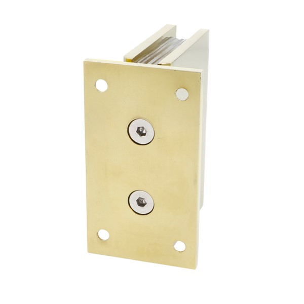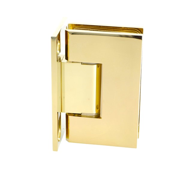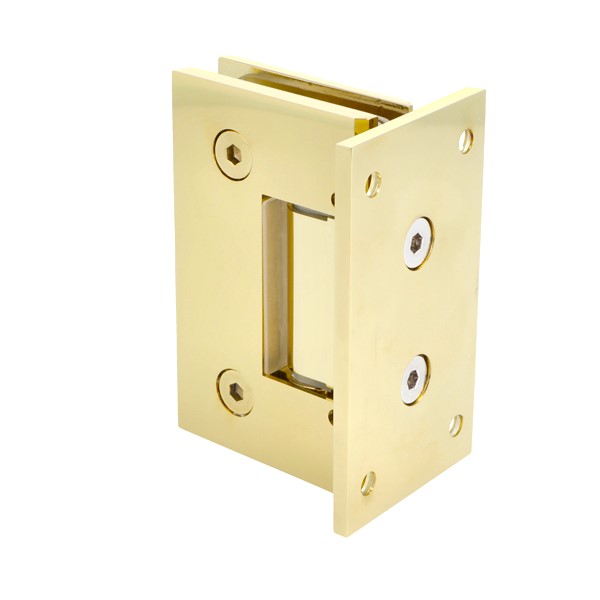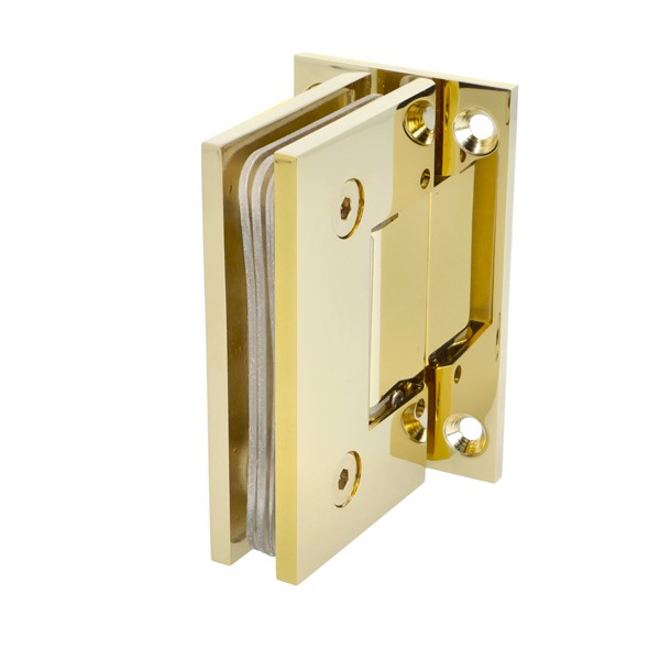 Shower Hinge "Tex III", Wall/Glass, Polished Brass, Centre Back Pl, 6-10mm Glass Thickness, W/15 DG Angle Adjustment Function & 25DG Return Function, Brass Material, Straight Edges. 2 x Transp. 1mm & 2 x Transp. Cushions 2mm Thickness