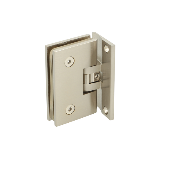 Shower Hinge "Turku" 90DG, SS-Look, Offset Back Pl, 6-10mm Glass Thickness, W/Angle Adjustment Function & 25DG Return Function, Brass Material, Straight Edges