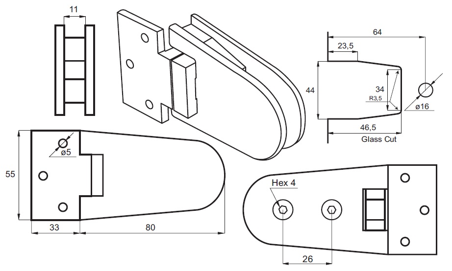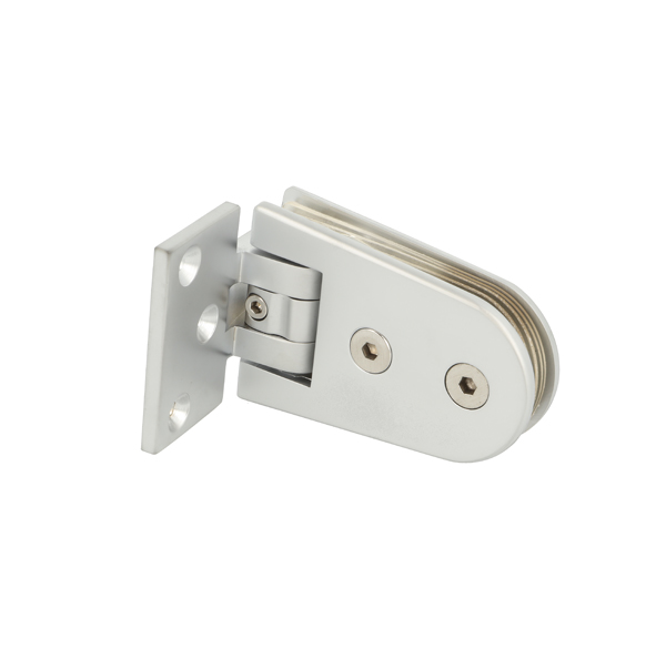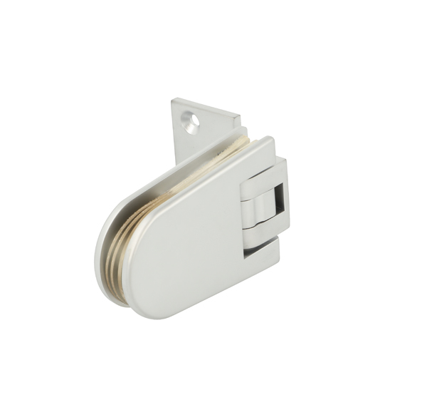 Shower Hinge "Zug", Wall/Glass, Alu-Look, 3 Holes, Offset Narrow Plate,F/6-10mm Glass,W/Angle Adjustment Function & 25 Degree Return Function,Brass Material, Oval Shape W/Straight Egdes
