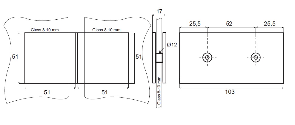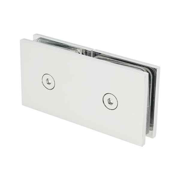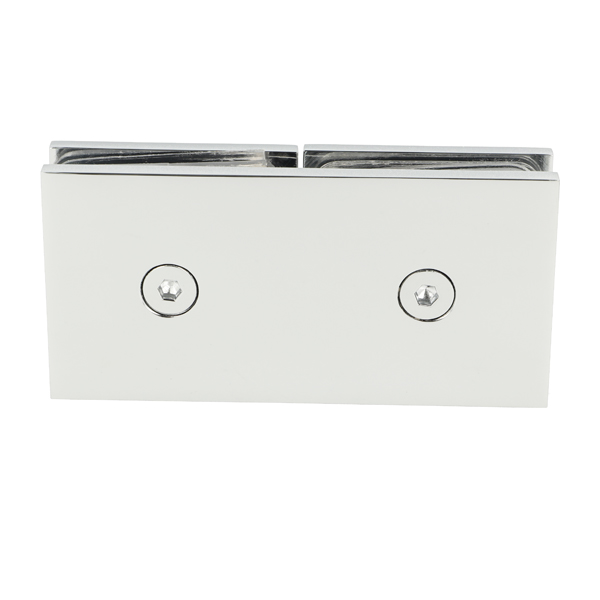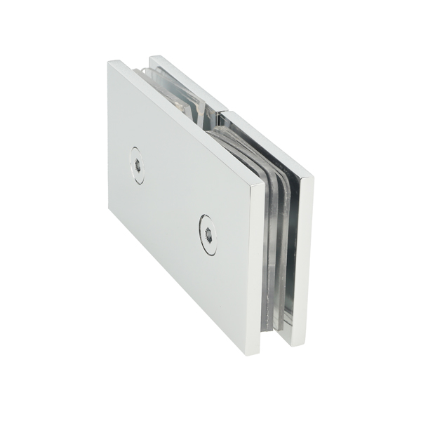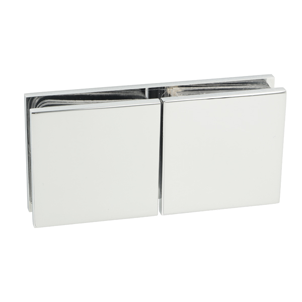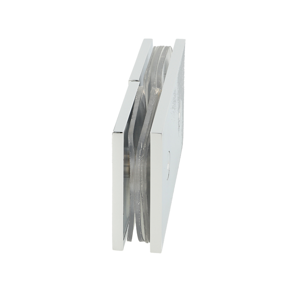 Glass Clamp "Bern", 180DG, CPL, Glass/Glass, 102,5x51x17mm, Square Corners, 8-10mm Glass, Glass Mounted By ø12mm Drilling, Brass Material