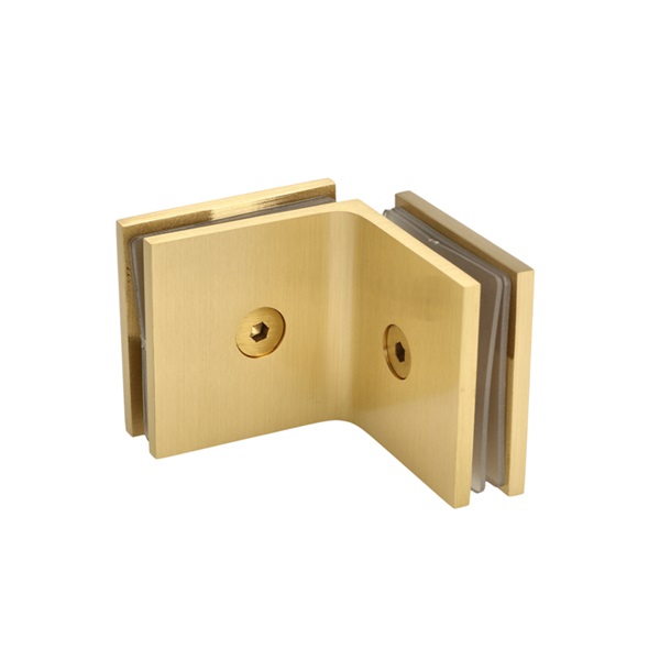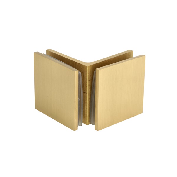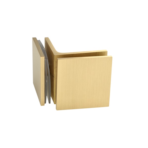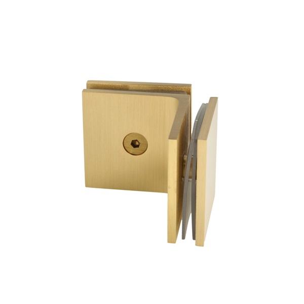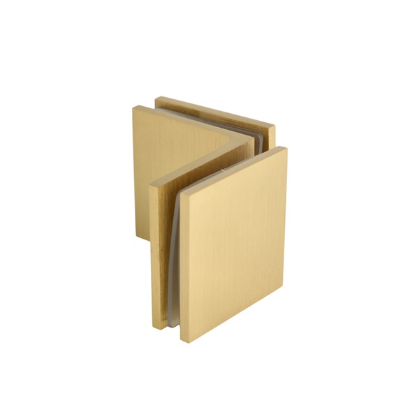 Glass Clamp "Bern", 90DG, Brushed Brass, Glass/Glass, 51x51x 17mm, Square Corners, 8-10mm Glass, Glass Mounted By ø12mm Drilling, Brass Material
