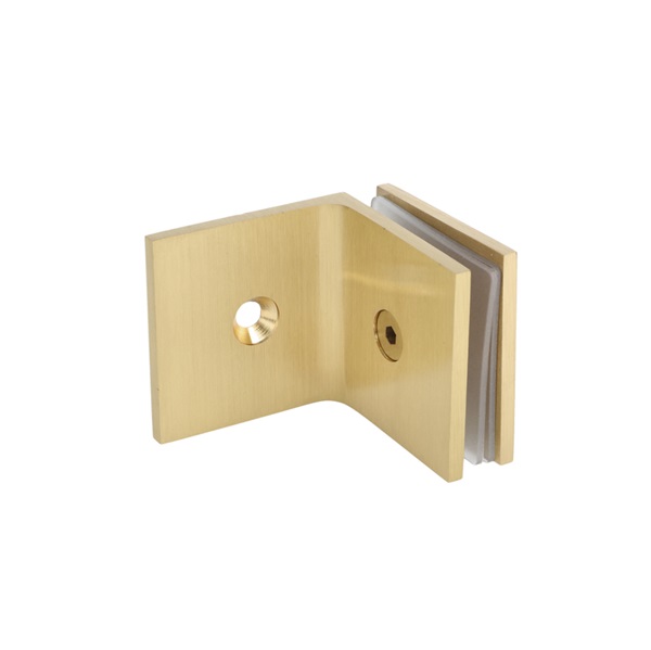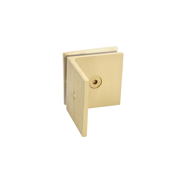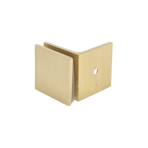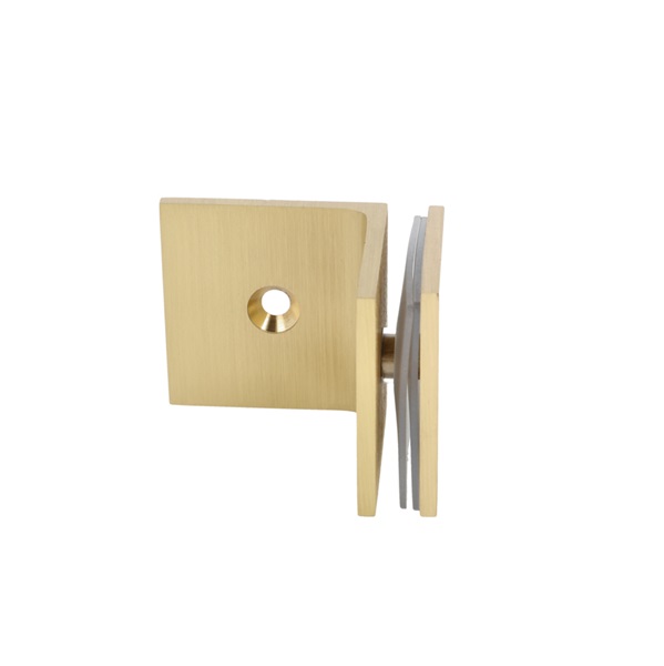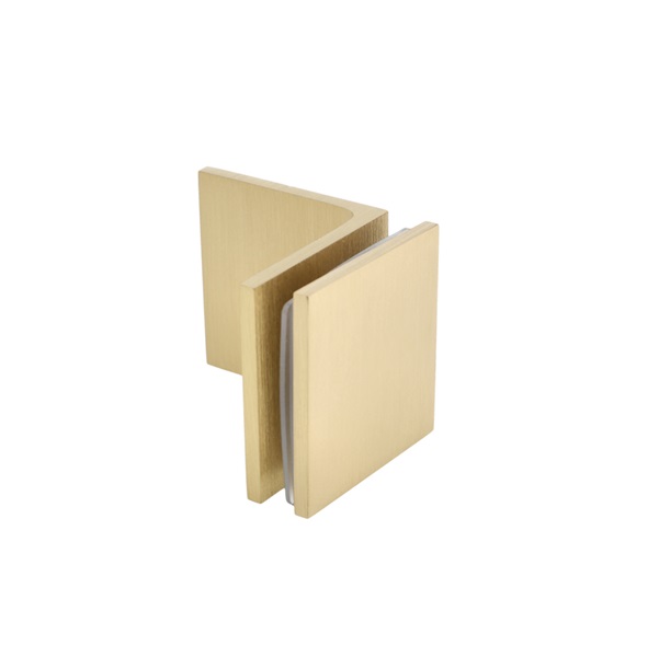 Glass Clamp "Bern", 90DG, Brushed Brass, Glass/Wall, 51x51x Square Corners, 8-10mm Glass, Wall Mounted By ø5mm Screw Hole, GLass Mounted By ø12mm Drilling, Brass Material