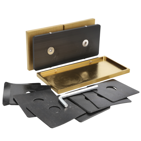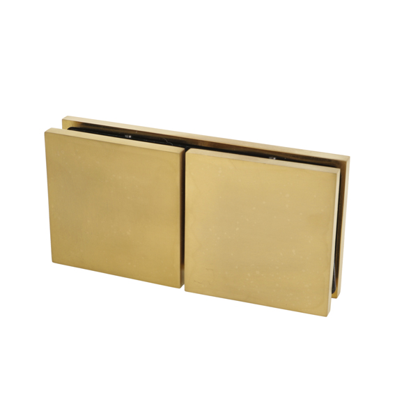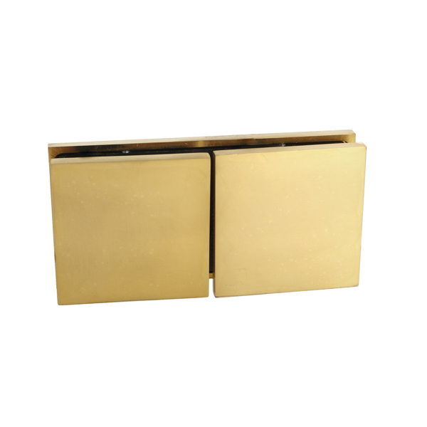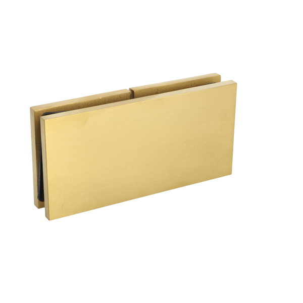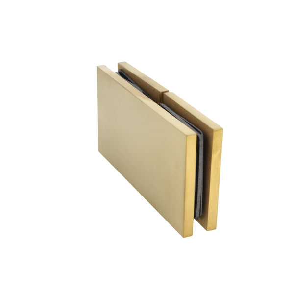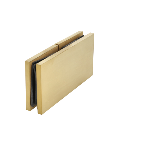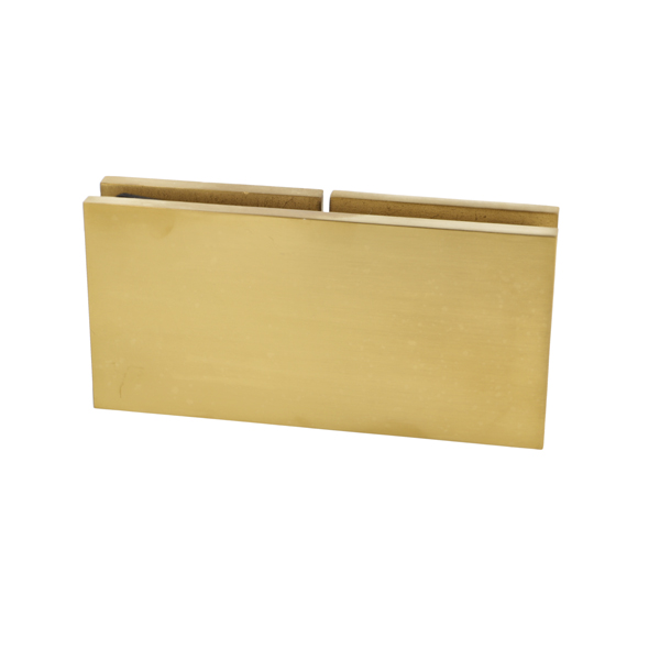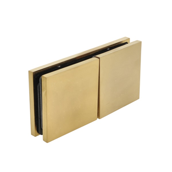Glass Clamp "Lima", 180DG, Brushed Brass, Glass/Glass, 122,4 x60x20,5mm, 6-10mm Glass, Glass Mounted By ø14mm Drilling, Hidden Screws, Brass, Alu & SS-304 Material