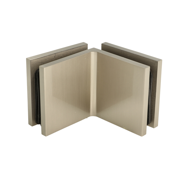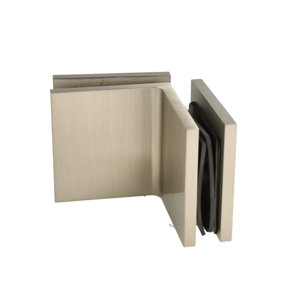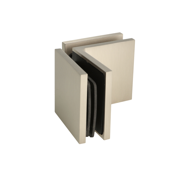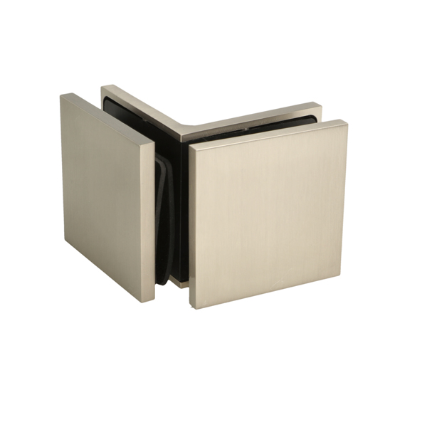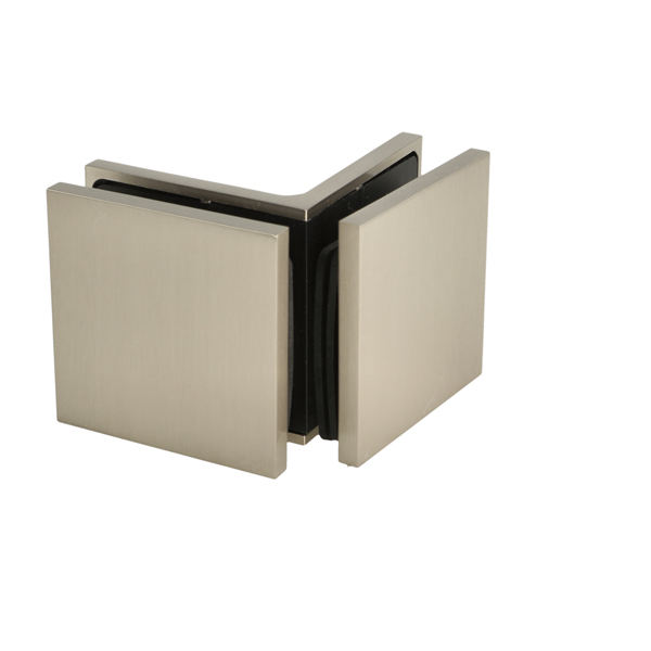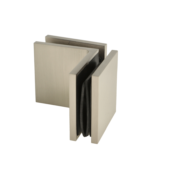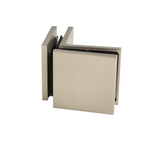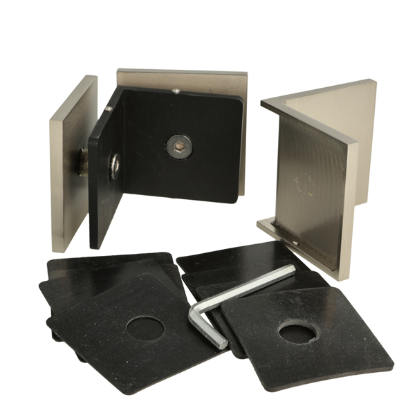 Glass Clamp "Lima", 90DG, SS-Look, Glass/Glass,60x60x20,5mm, 6-10mm Glass, Glass Mounted By ø14mm Drilling, Hidden Screws, Brass, Alu & SS-304 Material