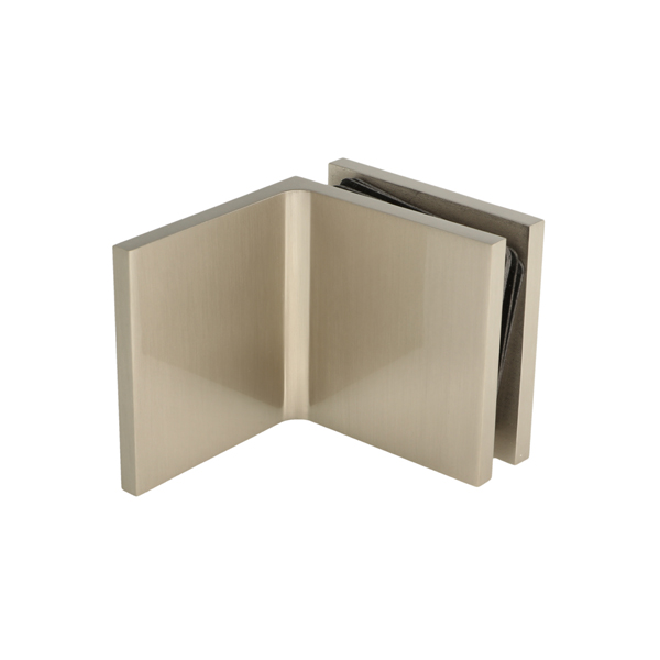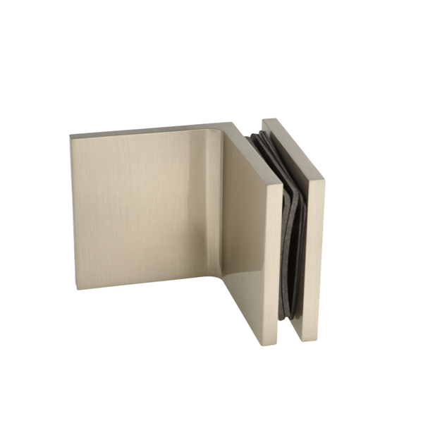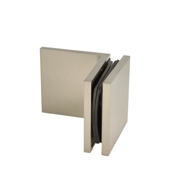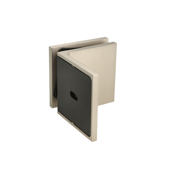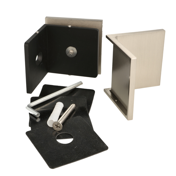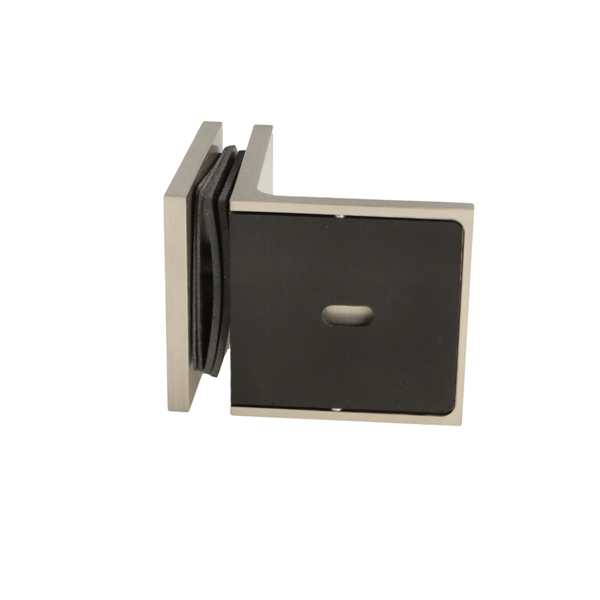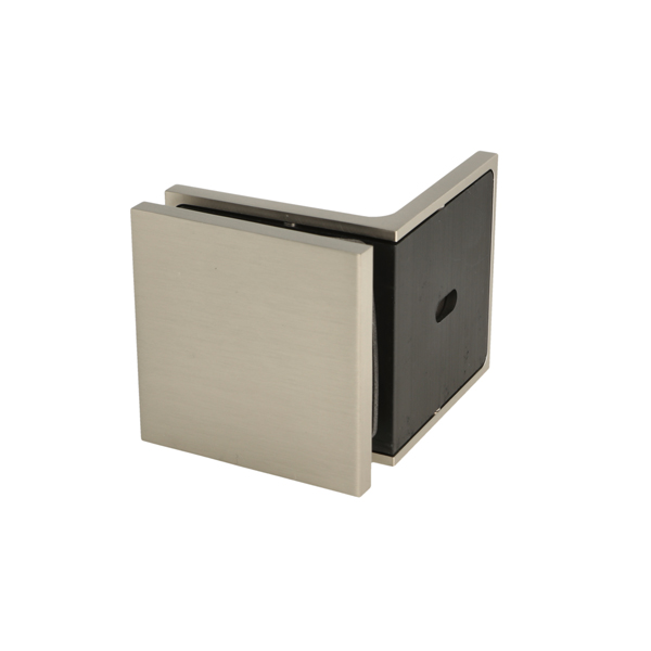 Glass Clamp "Lima", 90DG, SS-Look, Glass/Wall, 60x60x20,5mm, 6-10mm Glass, Wall Mounted By ø5mm Screw Hole, Glass Mounted By ø14mm Drilling, Hidden Screws, Brass, Alu & SS-304 Material