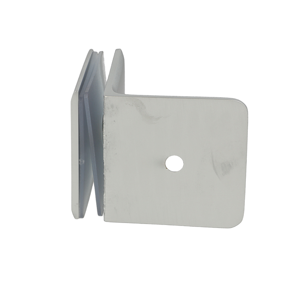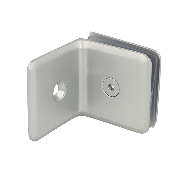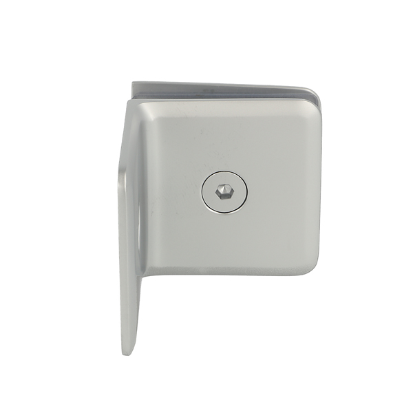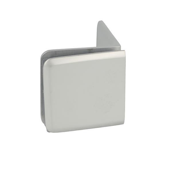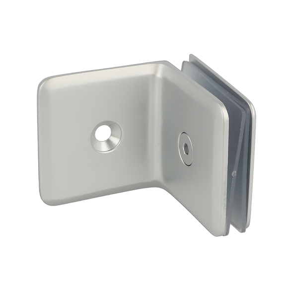 Glass Clamp "Lund", 90DG, Alu-Look, Wall/Glass, 51x51x17mm, 8-10mm Glass, Wall Mounted By 1xø5mm Screw Hole, Glass Mounted By ø12mm Drilling, Brass Material, Chamfered Edges
