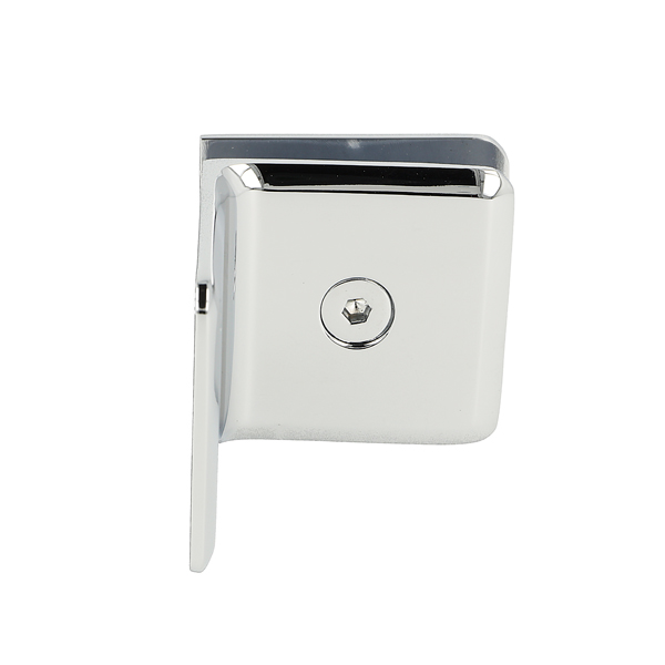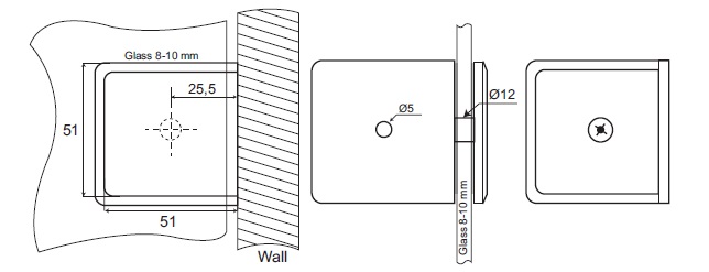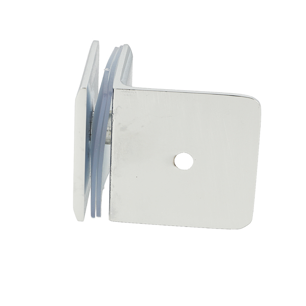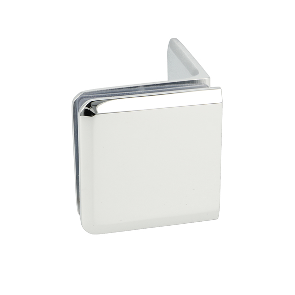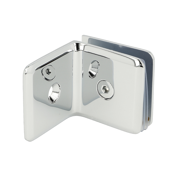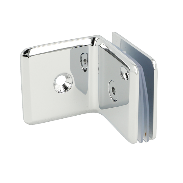 Glass Clamp "Lund", 90DG, CPL, Wall/Glass, 51x51x17mm,8-10mm Glass, Wall Mounted By 1 x ø5mm Screw Hole, Glass Mounted By ø12mm Drilling, Brass Material, Chamfered Edges