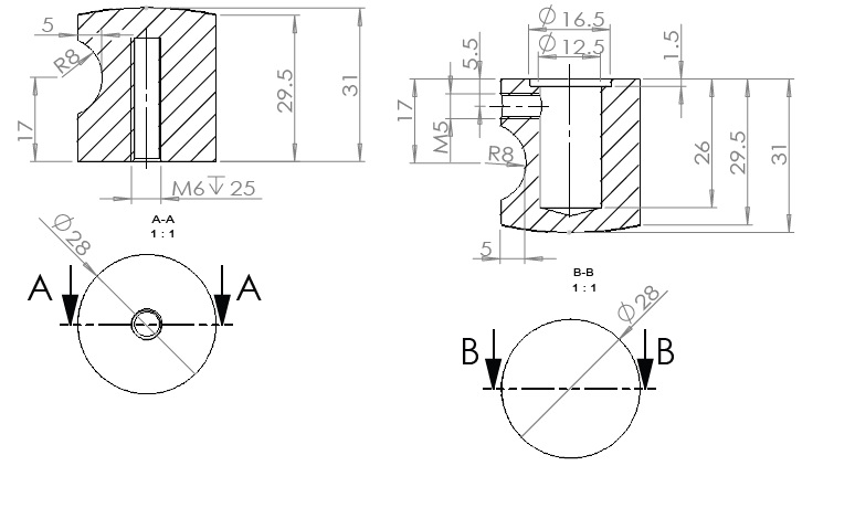 Brass Door Knob "Haag II", ø28mm, Black Finish,6-12mm Glass Thickness, With Insert Brass Bushing, Drill Hole ø10 mm