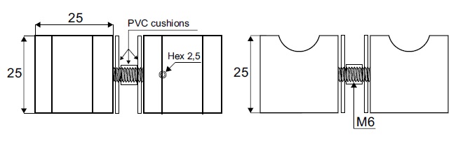 Brass Door Knob "Oslo II", 25x25mm, Polished Brass, 6-12mm Glass. Drill Hole ø10 mm