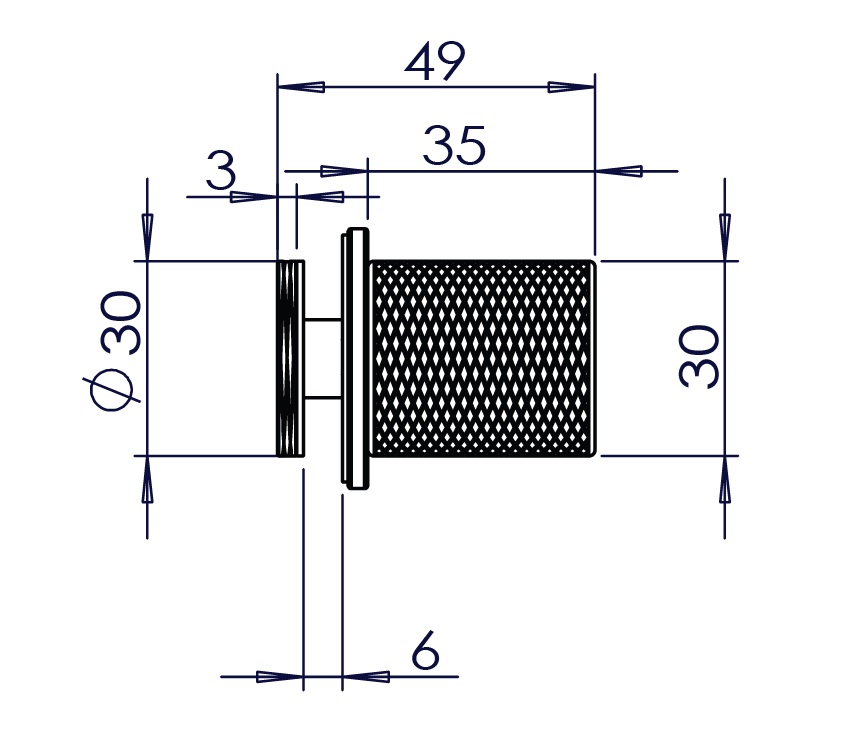 Brass Door Knob "Turin Single" ø30mm, CPL, 6-12mm Glass Thickness, Drill Hole ø14 mm