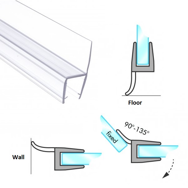PVC Seal Glass To Floor, S-5702, 2,5 Mtr, F/6mm Glass ,With 8mm Soft Fin