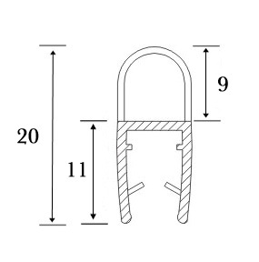 PVC Seal Glass To Floor, S-5708, 2,5 Mtr, F/6mm Glass ,With 9mm Lip