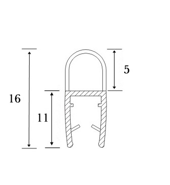 PVC Seal Glass To Floor, S-5715, 2,5 Mtr, F/6mm Glass ,With 5mm Lip